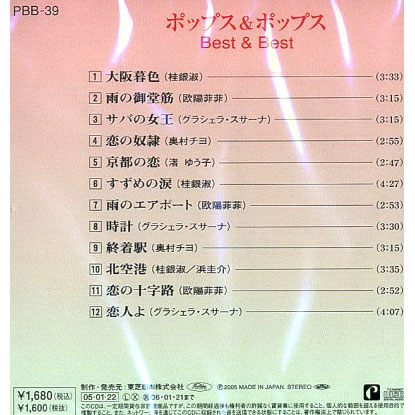 | ■ ポップス&ポップス ベスト&ベスト 欧陽菲菲・桂銀淑・奥村チヨ・渚ゆう子・グラシェラ.スサーナ PBB-39 |