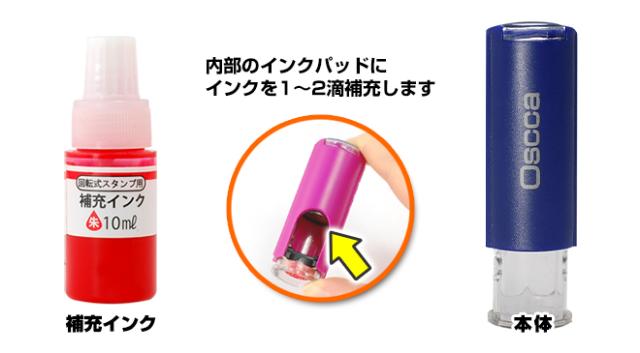 オスカ 回転式ネーム印 補充インク 10ml (朱) (HK020)