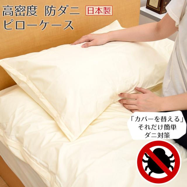 [ keyword | 高密度 防ダニ ピローケース まくらカバー 枕カバー ピロカバー 日本製 無地 アイボリー ブルー ピンク ]