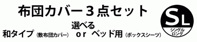 | サイズ | 1)掛け布団カバー:150×210cm 2)敷き布団カバー:105×215cm or ボックスシーツ:100×200×28cm 3)ピローケース :43×63cm |