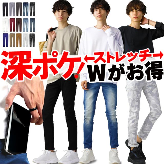 送料無料 メンズ スキニー ストレッチパンツ スキニーパンツ スリム パンツ カラーパンツ ラインパンツ 黒 白 ブラック ホワイト ストレッチ チノパン ズボン デニムパンツ メンズファッション 大きいサイズ おしゃれ