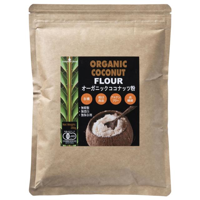 有機JAS ココナッツフラワー ココナッツ粉 280g 1袋 オーガニック 低GI GI値は小麦粉の約5分の1 ココナッツパウダー ココナッツファイバー 無漂白 無保存料