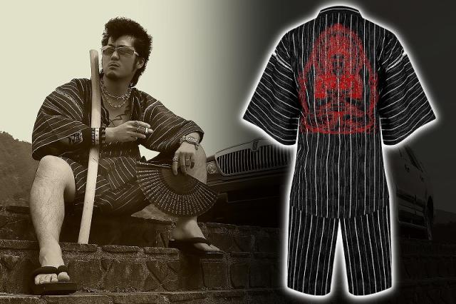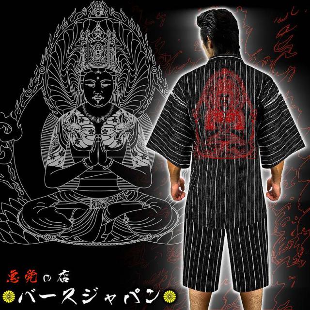 送料無料 黒 しじら織り甚平 大日如来001 悪羅悪羅系オラオラ系ヤクザヤンキーチンピラ不良メンズ チョイ悪夏祭り花火お盆 悪党の店 バースジャパン BIRTHJAPAN
