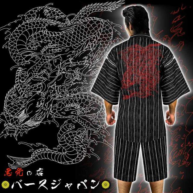 送料無料 黒×ストライプ しじら織り甚平 龍柄004 悪羅悪羅系オラオラ系ヤクザヤンキーチンピラ不良メンズ チョイ悪夏祭り花火お盆 悪党の店 バースジャパン BIRTHJAPAN