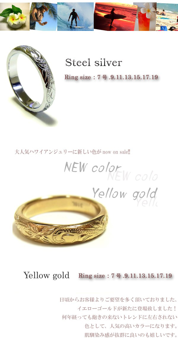送料無料 刻印無料 ペアハワイアンジュエリー ペアリング 指輪 シルバー イエローゴールド ステンレス BOX付き ラッピング対応 アレルギー対応