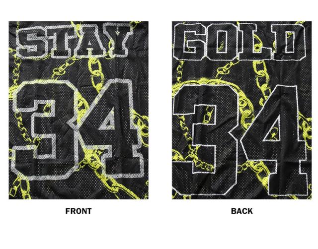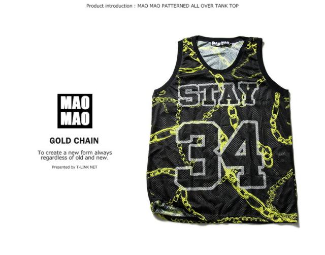 総柄デザイン メッシュバスケットシャツ 金ネックレス メッシュ タンクトップ ストリート系 ダンス