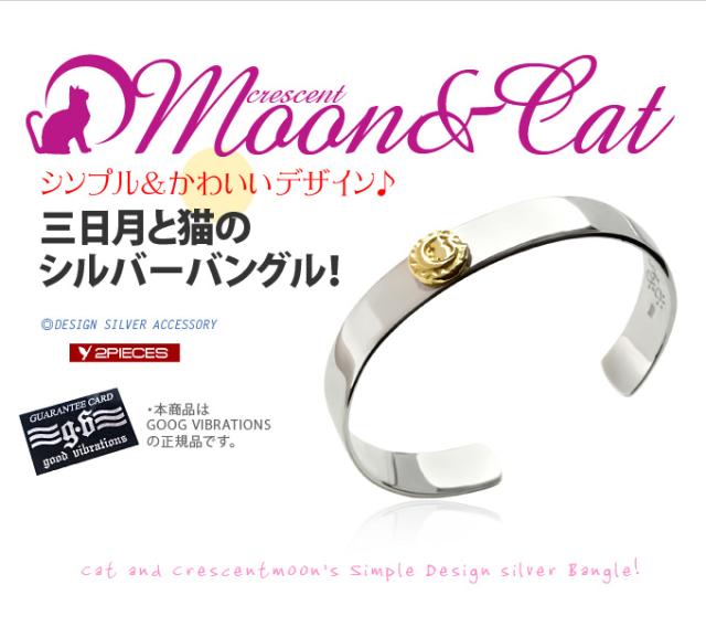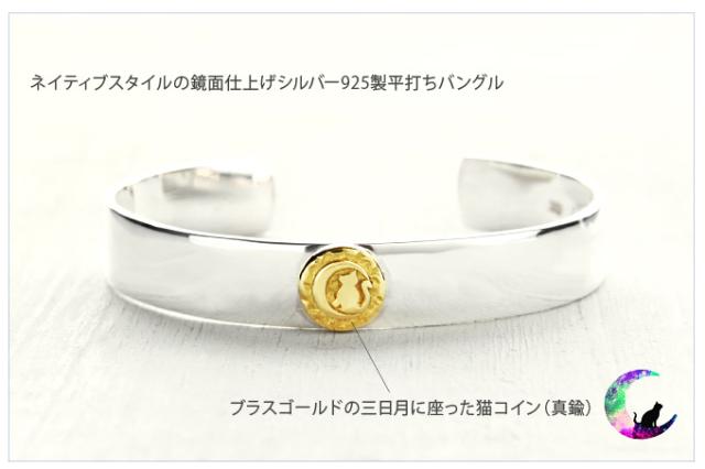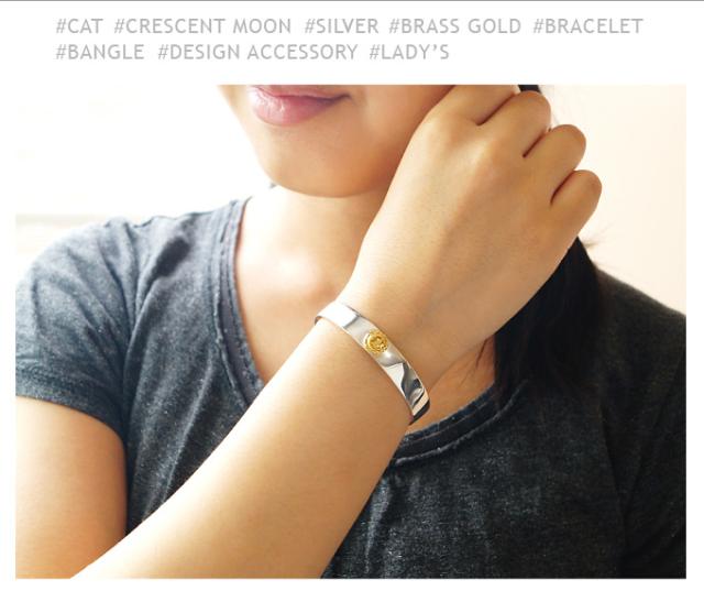 シルバーアクセサリー シルバーバングル レディース 猫 ネコ ねこ 月 ムーン b0642