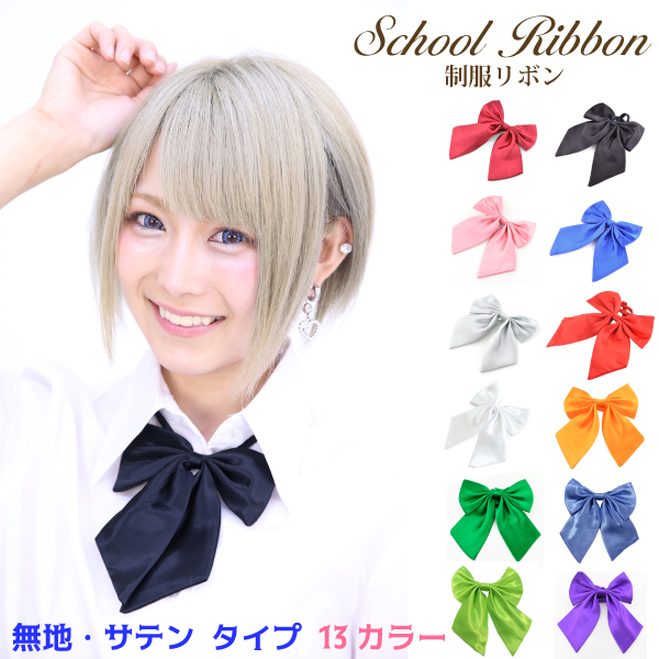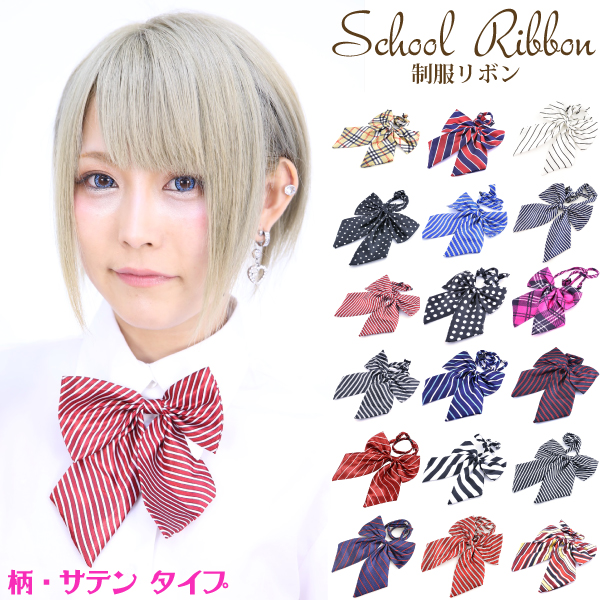 【メール便対応】スクール 制服 リボン ネクタイ 柄・サテンタイプ 18種類 JC JK スクール コスプレ リボン ネクタイ ストライプ ドット チェック ワンタッチ 取り外し 簡単 長さ調整 ┃