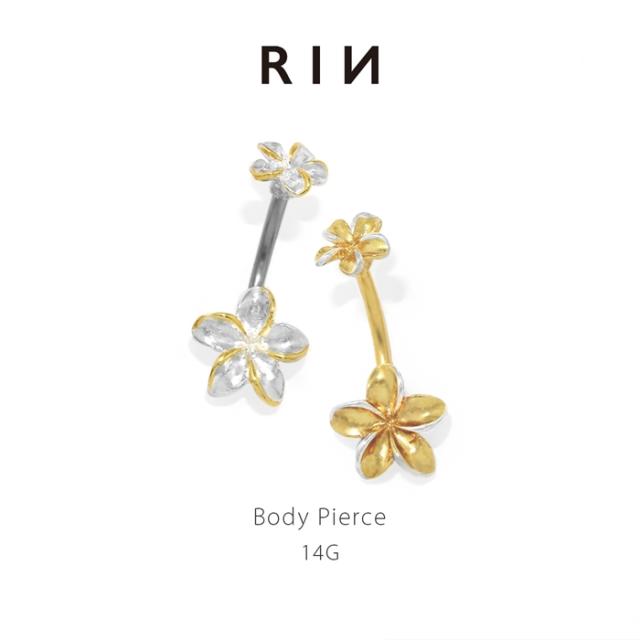 ボディピアス へそピアス かわいい 14G ハワイアン プルメリア ダブル 花 南国 リゾート 夏 海 カーブバーベル バナナバーベル ピアス 金属アレルギー 凛 RIN 片耳用