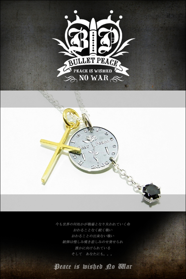 ☆送料無料☆ 【BULLET PEACE】 ブラックジルコニア・コイン&クロスシルバーネックレス