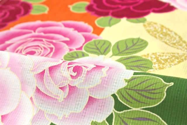 【モデル「大橋リナ」着用!】 浴衣 レディース 緑 グリーン 黄色 オレンジ カラフル 市松 薔薇 バラ 花 綿 女性用 仕立て上がり