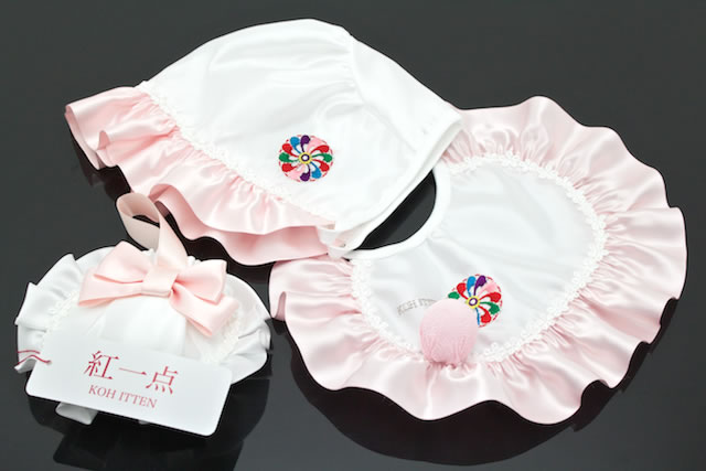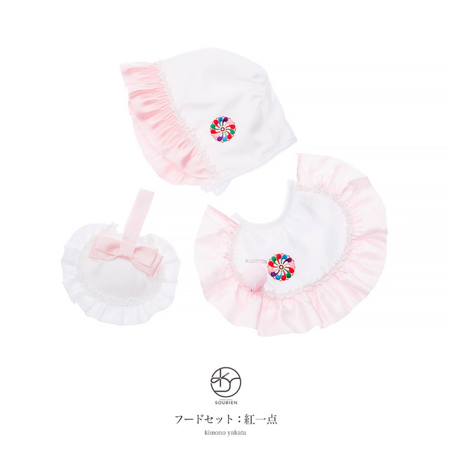 フードセット 白 ホワイト ピンク 花 刺繍 女児 ブランド 紅一点 女の子 祝着 お食い初め お宮参り