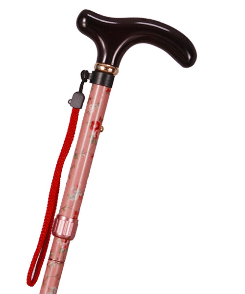 代引不可 アルミ長さ調節付き折り畳み布巻き仕上げステッキ(杖) アルミ棒&木製手元 ピンク 全長78~86cm/重量320g/直径16mm 1014