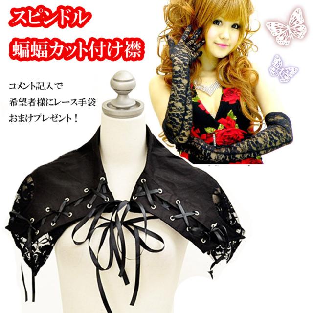 ゴスロリ つけえり 付け襟 ハロウィン コスチューム 衣装 スピンドル 蝙蝠カット バッド デビル ガール こうもり コウモリ ※ご希望おまけ終了