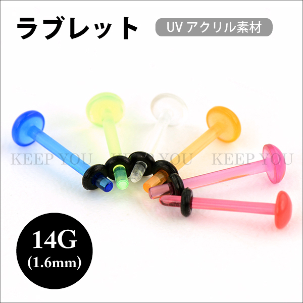 【メール便対応】ラブレットスタッド UVアクリル カラー 14G(1.6mm) リテーナー シャフト16mm ホールキープ カラフルカラー 透明ピアス ボディーピアス ロブ ヘリックス 14ゲージ(1.6ミリ)┃