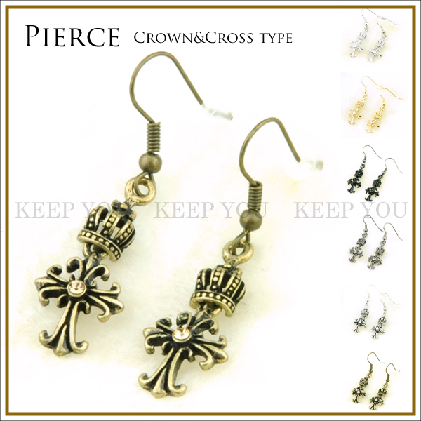 【メール便対応】ピアス フックタイプ(1ペア) クラウン&クロス 6色 メンズ メタル レディース ユニセックス ボディピアス pi-0016 ┃
