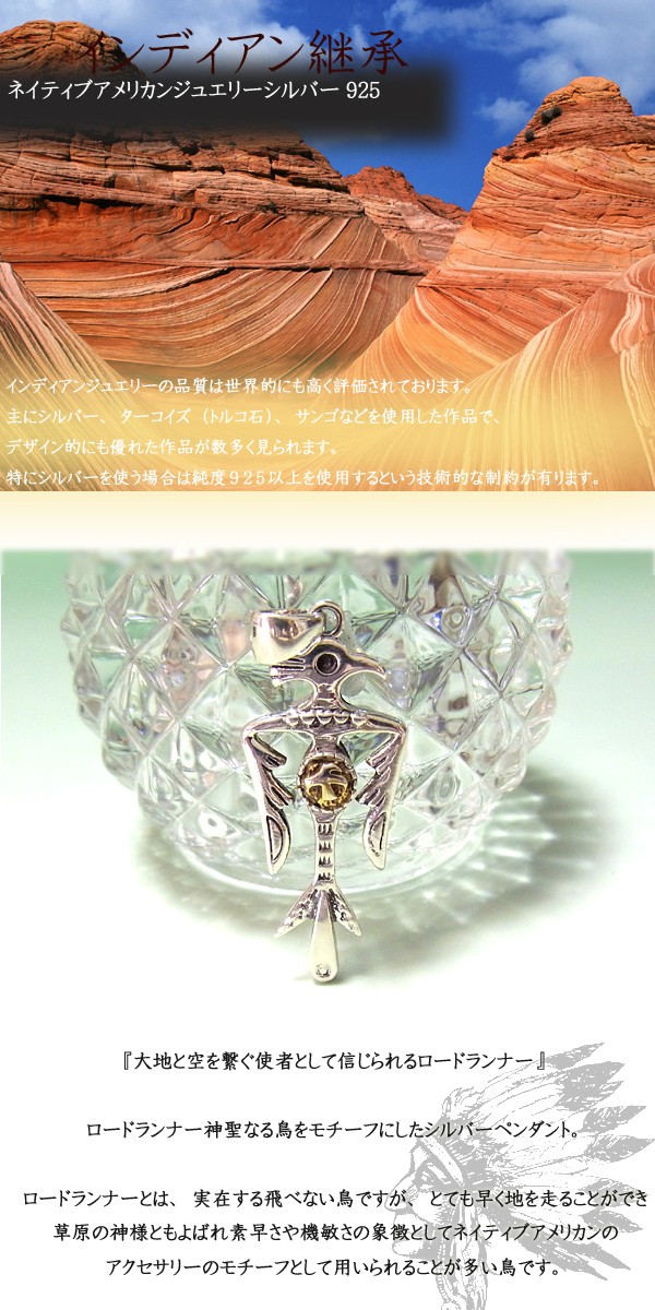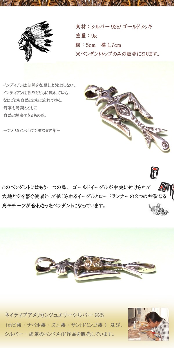 ロードランナーシルバーペンダント ネイティブアメリカンジュエリー インディアンジュエリー シルバーペンダント シルバー925/