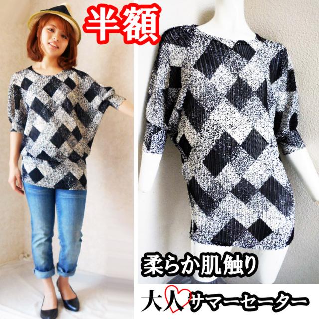訳あり激安大人ドルマンニットサマーセータートリックダイヤ柄ゆるかわ透け感ゆったりメッシュveryストーリィ半額セール※注意点あり