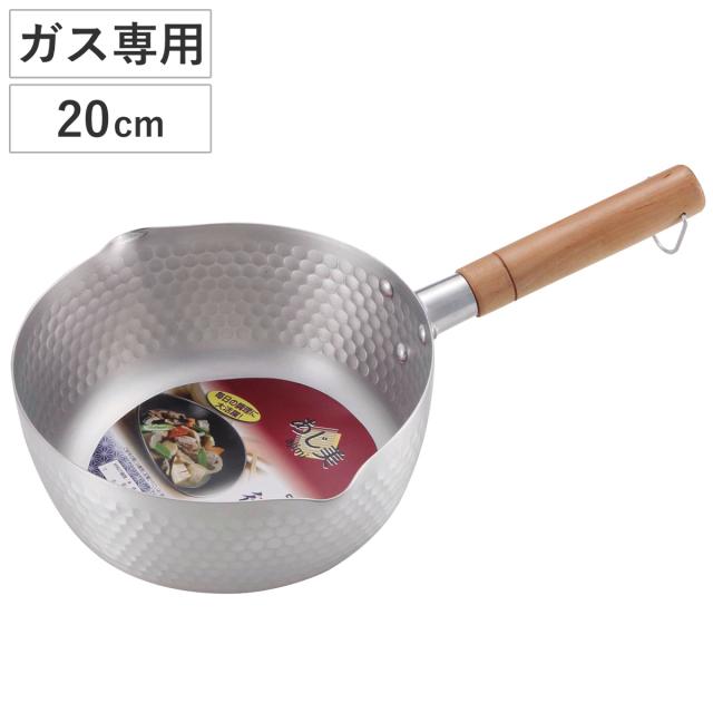 雪平鍋 20cm ガス火専用 あじ美 行平鍋 ( ゆきひら鍋 片手鍋 両口鍋 アルミ製 軽い 20センチ 槌目加工 片手なべ 鍋 軽量 注ぎ口付き )