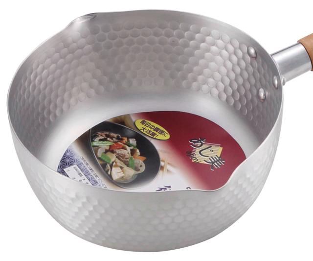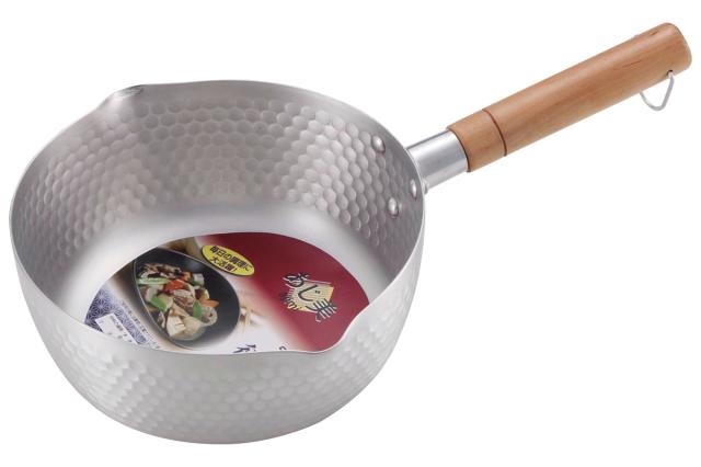 アルミ製で熱効率に優れ、軽くて扱いやすい雪平鍋です。本格槌目加工が施してあり、平らな面よりも表面積が広いため熱が伝わりやすく、保温力にも優れています。変形しにくく耐久性が高いので永くお使いいただけます。