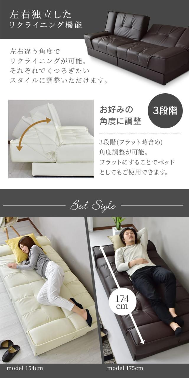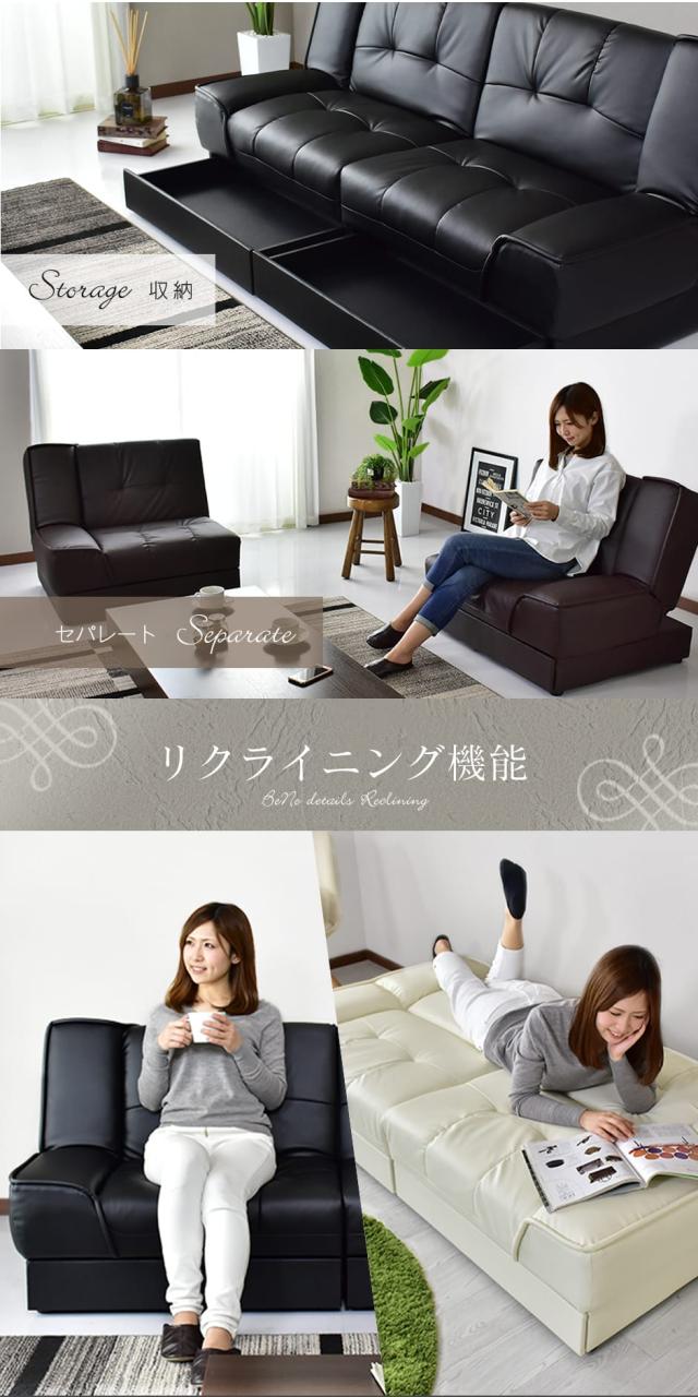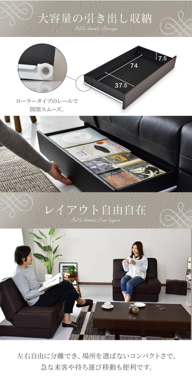 ソファー 2人掛け ソファ カウチ フロアソファ レザー調 収納付き 収納 リクライニング デザイナーズ ベーネ 2P インテリア家具 おすすめ おしゃれ 北欧 big_ki プレゼント tm