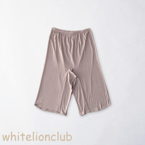 素肌とお洋服を汗から守る、スカートでもパンツスタイルにも使えるペチパンツ。裾は広がっておらず、ストレートな形です。脇継ぎの無い筒網みで、正絹ならではのなめらかさがありますので、お洋服の邪魔をしません。暑い時期の、あの不快な太腿の汗も吸収発散してくれます。また、こちらのシリーズはマチが2重になっているので、鼠蹊部の締め付けが苦手なお客様や、就寝時のショーツとしてのご使用もオススメいたします。夏は汗を吸湿放湿し、冬は保温してくれる正絹100%のボトム。季節を選ばずお使いいただけますよ。