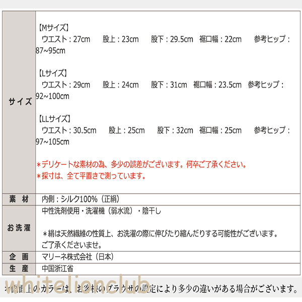 ※絹は天然繊維の性質上、お洗濯の際に伸びたり縮んだりする可能性がございます。ご了承くださいませ。