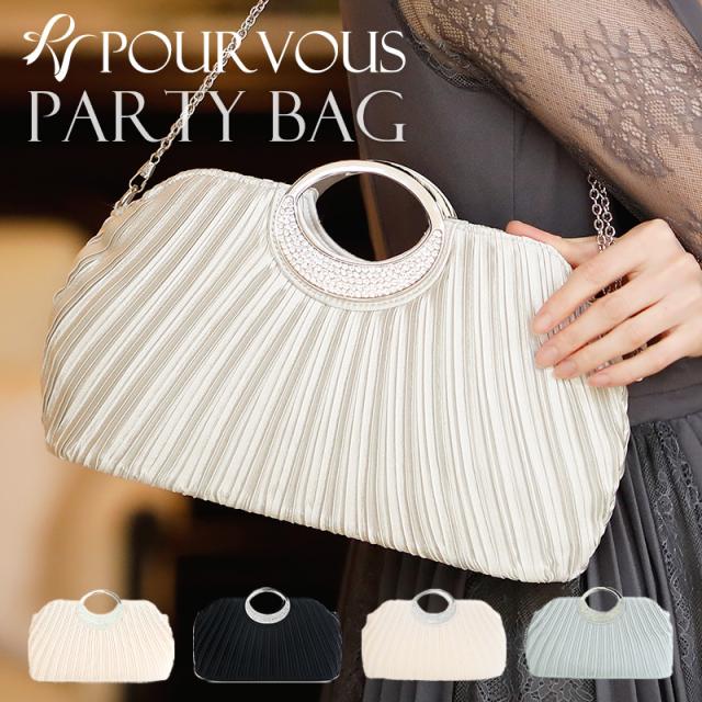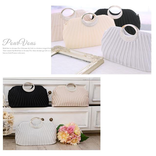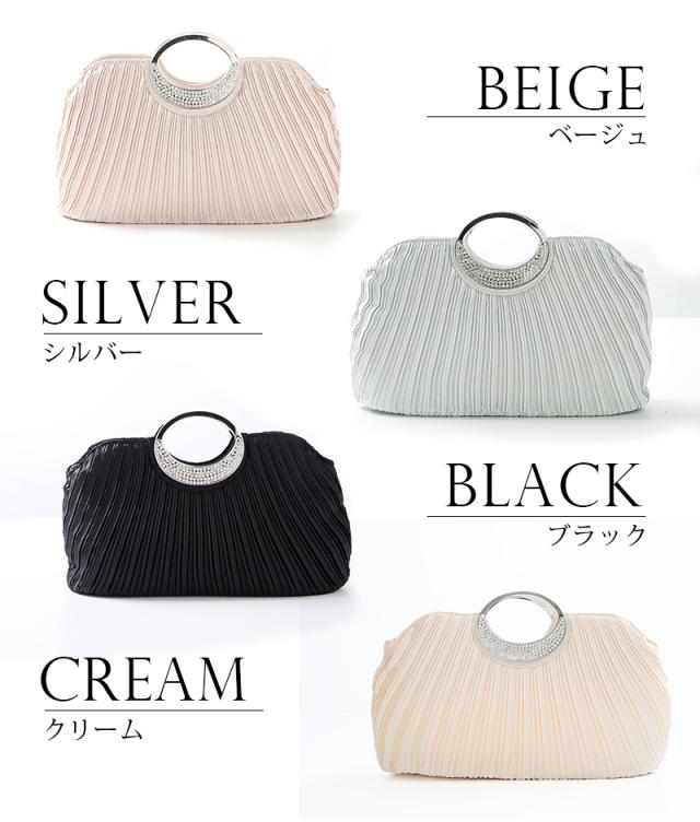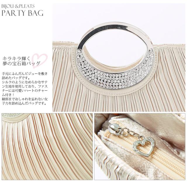 ビジューサテンプリーツハンドバッグ【b045】20代・30代・40代・50代パーティーバッグ・クラッチバッグ・サテン・マグネット・ラメ・ビジュー・プリーツ・ハンドバック・ベージュ・ブラック・シルバー・クリーム・ラインストーン・パール・フォーマル・シンプル・大容量・結婚式・二次会・同窓会・お呼ばれ・謝恩会・お宮参り・女子会・デート・入学式・卒業式・パーティー・冠婚葬祭