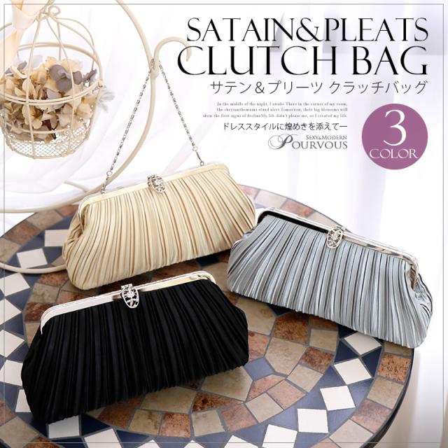 プリーツ クラッチバッグ エレガンスがま口【b046】20代・30代・40代・50代パーティーバッグ・クラッチバッグ・サテン・マグネット・ラメ・ビジューがま口・プリーツ・ブラック・ベージュ・シルバー・ラインストーン・パール・フォーマル・シンプル・大容量・結婚式・二次会・同窓会・お呼ばれ・謝恩会・お宮参り・女子会・デート・入学式・卒業式・パーティー・冠婚葬祭