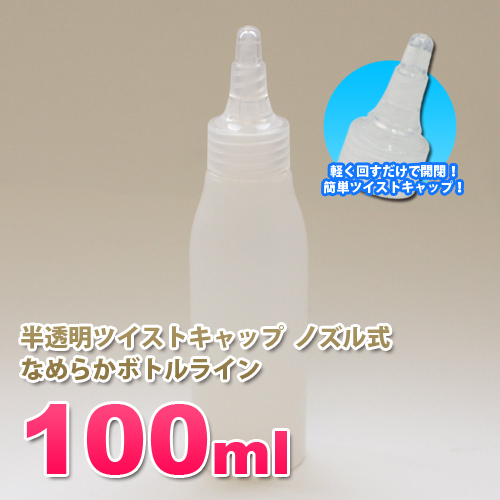 詰め替え容器100ml ツイスト式ノズルキャップ半透明ボトル。