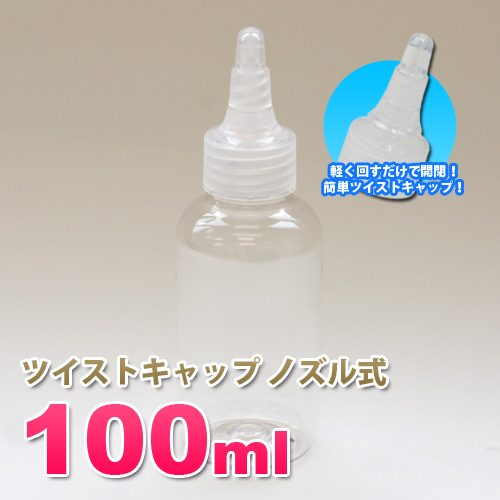 詰め替え容器100ml ツイスト式ノズルキャップ透明ボトル。