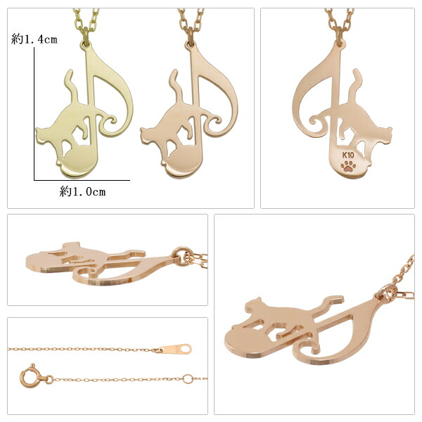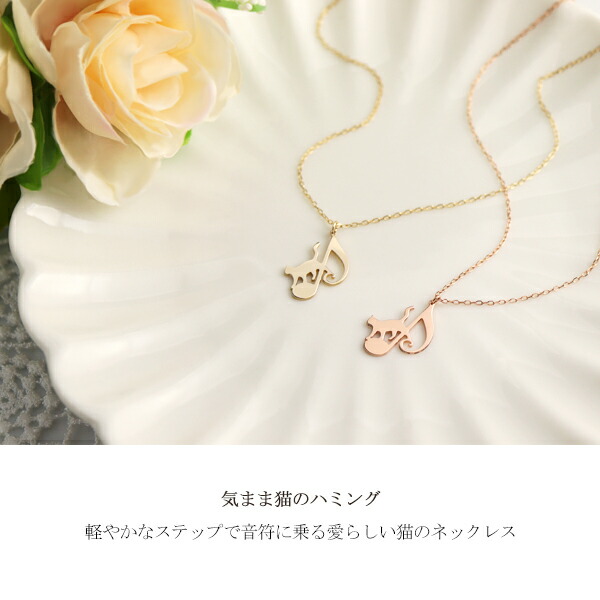 K10 YG PG 散歩 猫 音符 プレート ネックレス 10金 10k k10 ピンク ゴールド レディース 女性用 ねこ ネコ キャット cat プレゼント 猫ペンダント