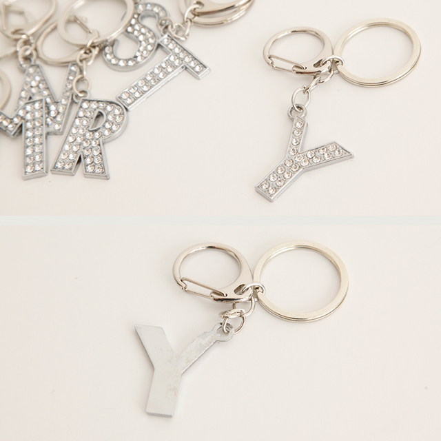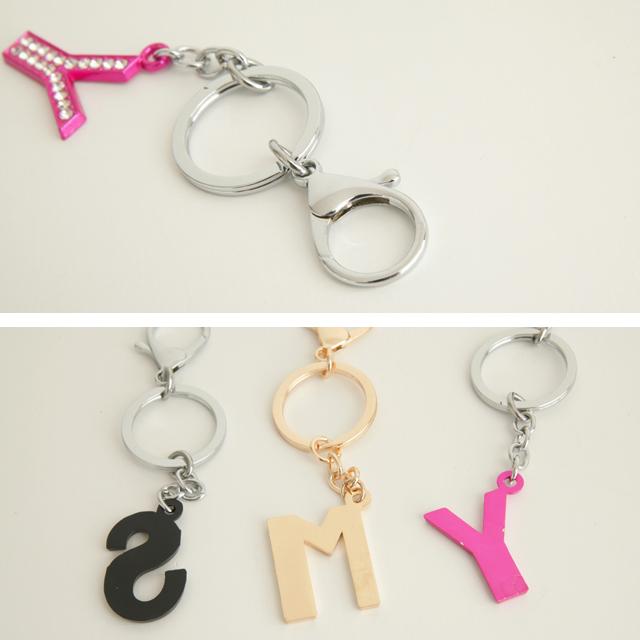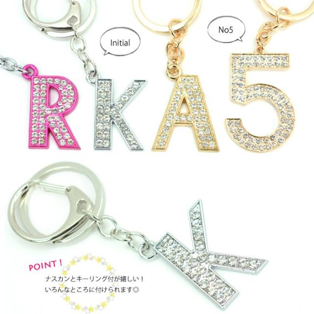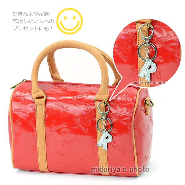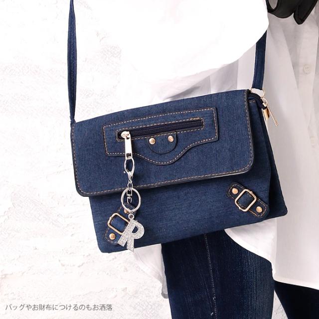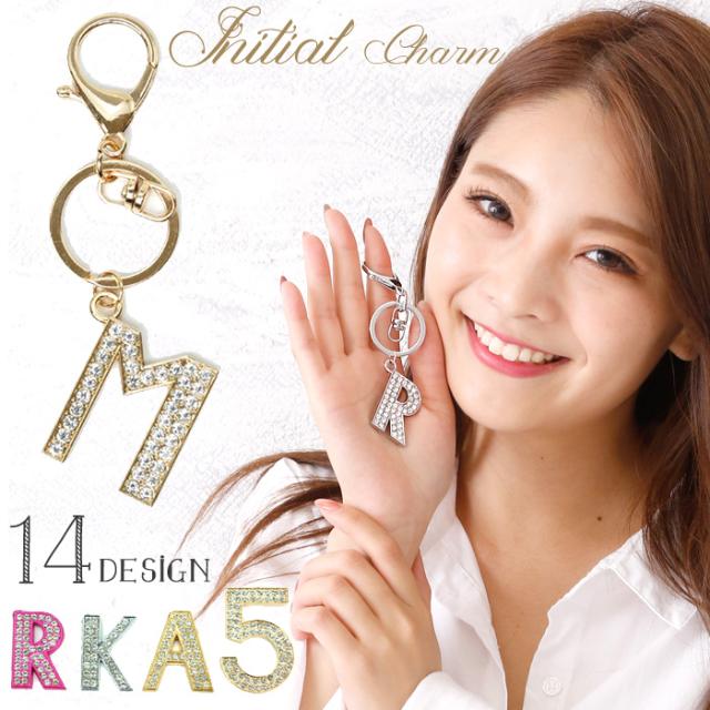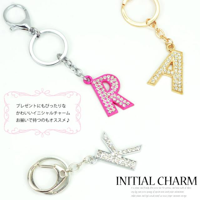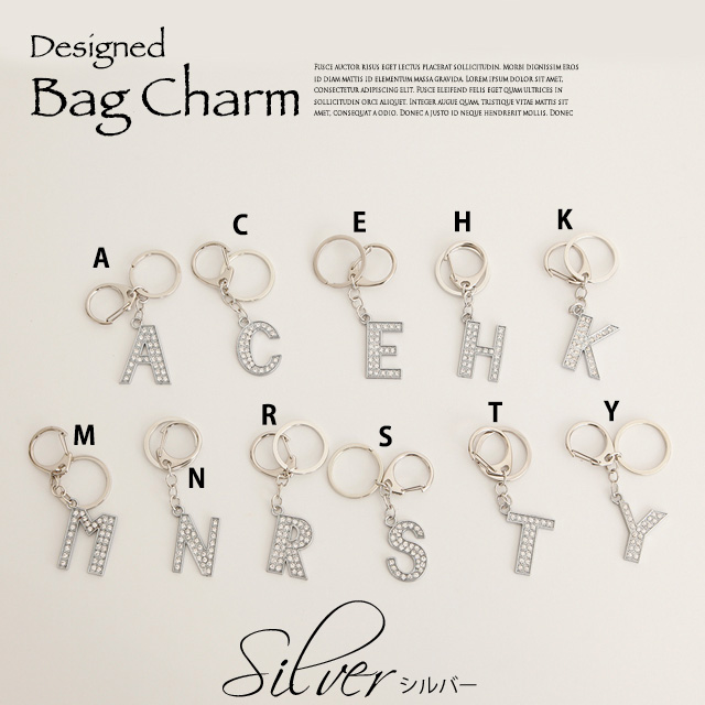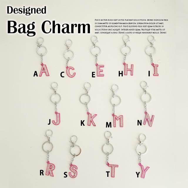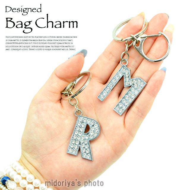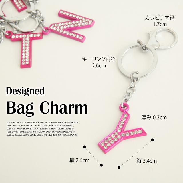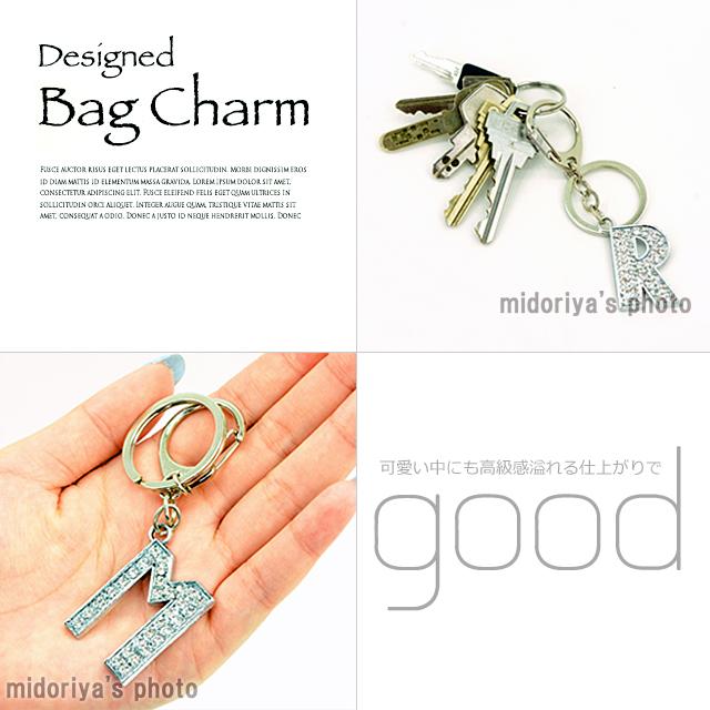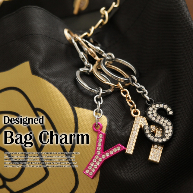 アルファベットをモチーフにラインストーンをあしらった、可愛い中にも高級感溢れる仕上がりのキーリング付きバッグチャーム!