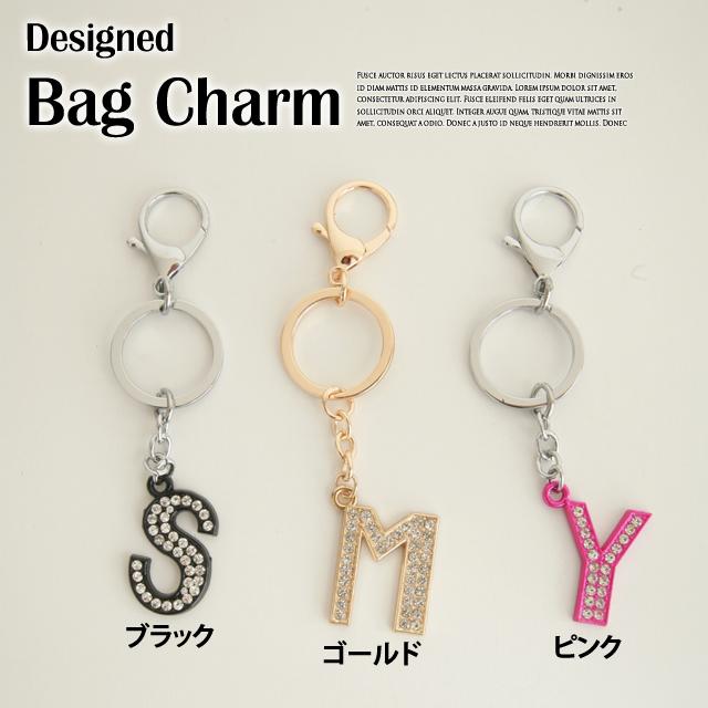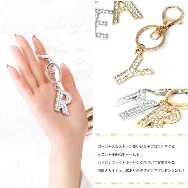 バッグチャーム イニシャル チャーム キーホルダー Lulu&berry アルファベット バッグチャーム (ar-JCH-ALm)【メール便送料無料】 キラキラ ラインストーン カラビナ キーリング おしゃれ 大人 かわいい プチプラ プレゼント シルバー ゴールド ピンク ブラック ポイント消化