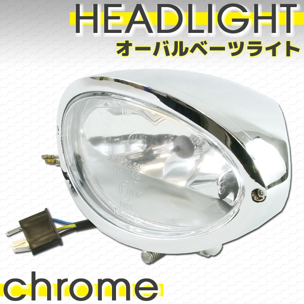 汎用 オーバル ベーツライト クローム 【ヘッドライト関連】 FTR CL400 CB223S GB250クラブマン CB400SS BOLT SR400 TW225 ST250Eタイプ 250TR W650 エストレヤ マグナ シャドウ バルカン エリミネーター 等に