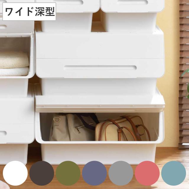 収納ボックス 前開き フロックワイド30 深型 幅57×奥行46×高さ31cm 4段階ストッパー ( 収納ケース 収納 おもちゃ箱 プラスチック フタ付き スタックボックス ストッカー 衣装ケース 衣類収納 収納箱 ストッカー )