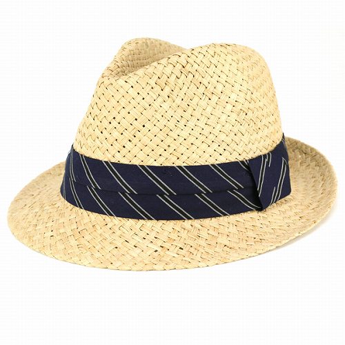 春夏 ラフィアハット 中折れ 天然素材 ストローハット メンズ レディース 麦わら帽子 紺リボン