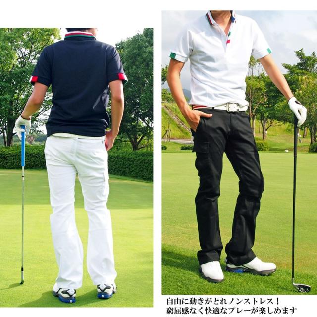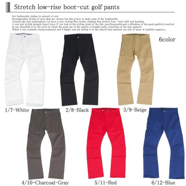 春夏 新作 送料無料 ゴルフパンツ メンズ ゴルフウェア ストレッチ 脚長 美脚 バナナシルエット 3D ローライズ ブーツカット おしゃれ パンツ ボトムス 白 黒 ブルー ベージュ チャコール レッド ブルー M L LL 2XL 春 夏 秋 人気 父の日 ネコポス