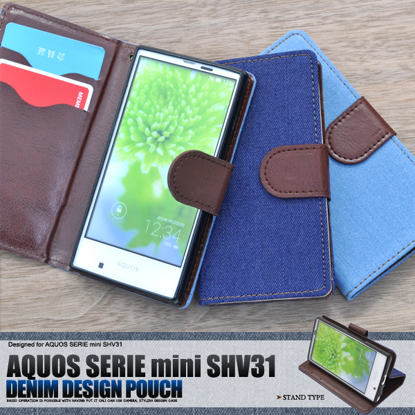 手帳型 AQUOS SERIE mini SHV31 デニムデザインケース シンプル かわいい 保護カバー au アクオス セリエ ミニ SHV31用