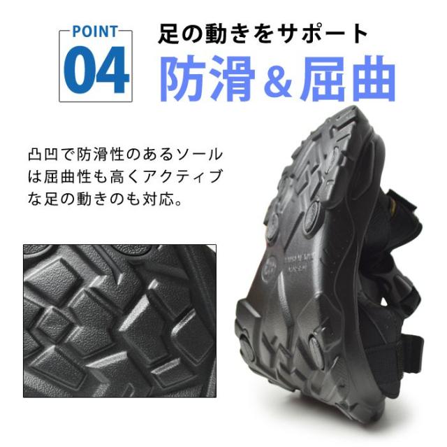 アクティブに曲がり、凸凹のソールが地面をしっかりキャッチ。