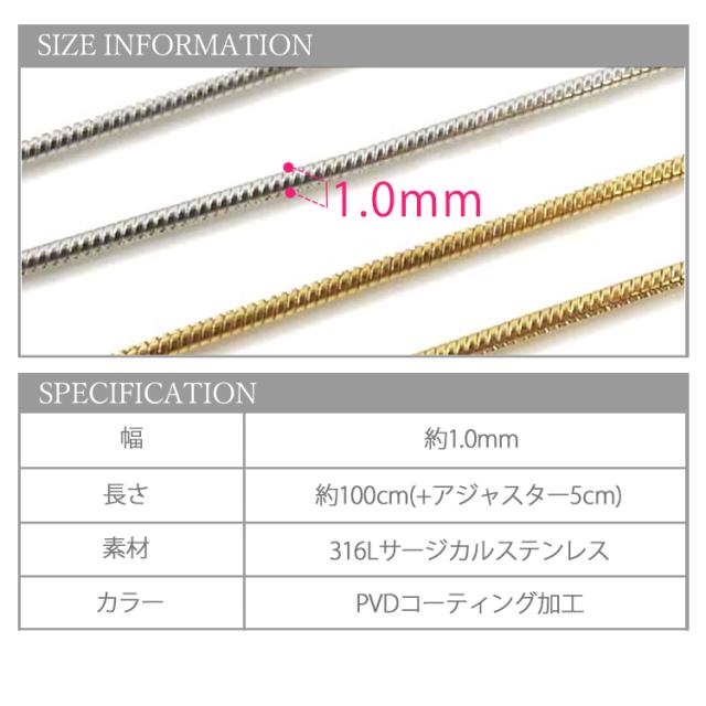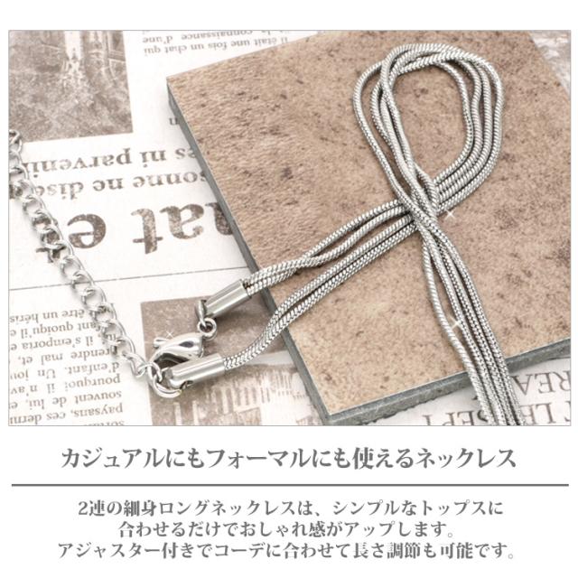 金属アレルギー対応 サージカルステンレス製 アジャスター付 2連スネークロングネックレス 長さ100cm ネックレスチェーン