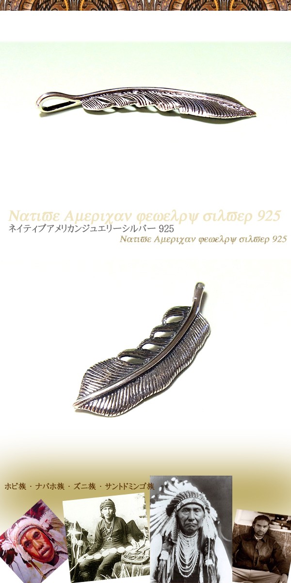 送料無料 ペンダント メンズ フェザー ネイティブ アメリカンジュエリー インディアン シルバー925 5.7cm/