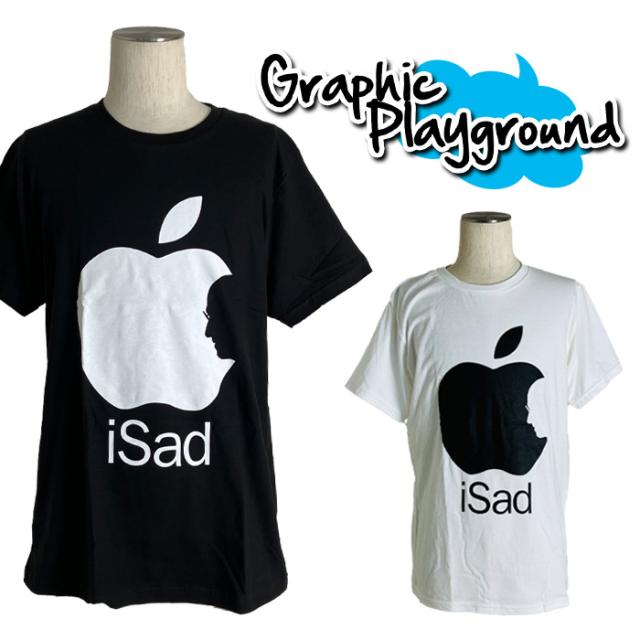[メール便送料無料]パロディーTシャツ メンズ レディース おもしろ Tシャツ りんごをかじられて私は悲しいiSad グラフィックTシャツ ポップTシャツ パロディ 大きいサイズ S-XXLサイズ 黒 白 ネタTシャツ 半袖 トップス ギフト