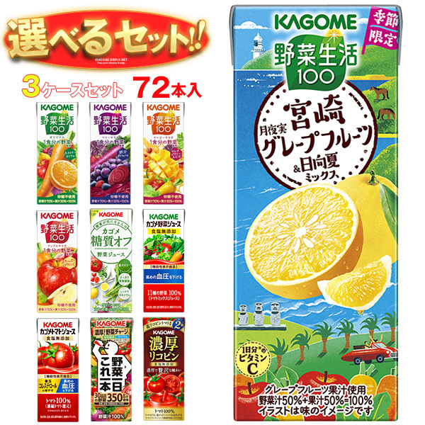 カゴメ 野菜生活・野菜ジュース 選べる3ケースセット 195・200ml紙パック×72(24×3)本入| 送料無料 よりどり 野菜ジュース カゴメ 紙パック 野菜生活