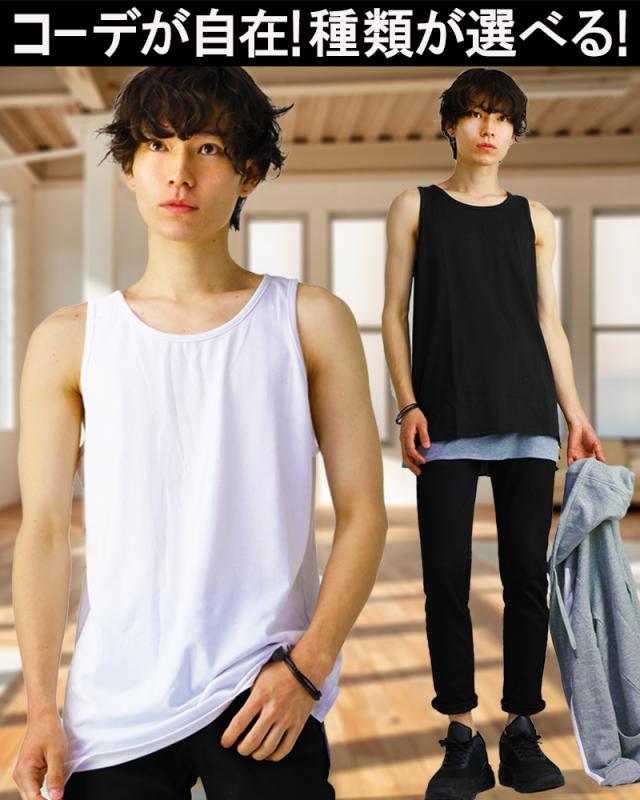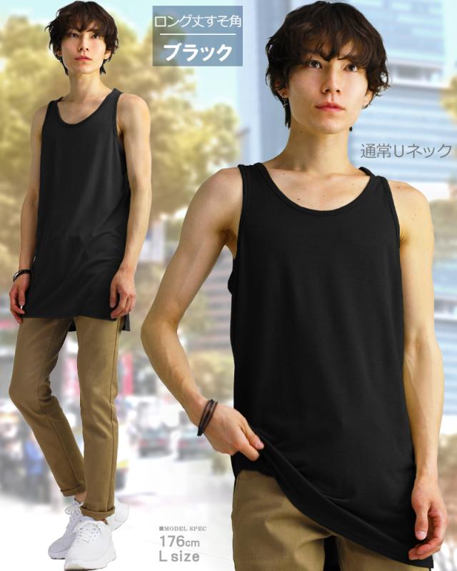 タンクトップ メンズ ロング ロング丈 長め キレイめ 無地 細身 タイト インナー シンプル メンズファッション 肌着 スポーツ ロングタンクトップ