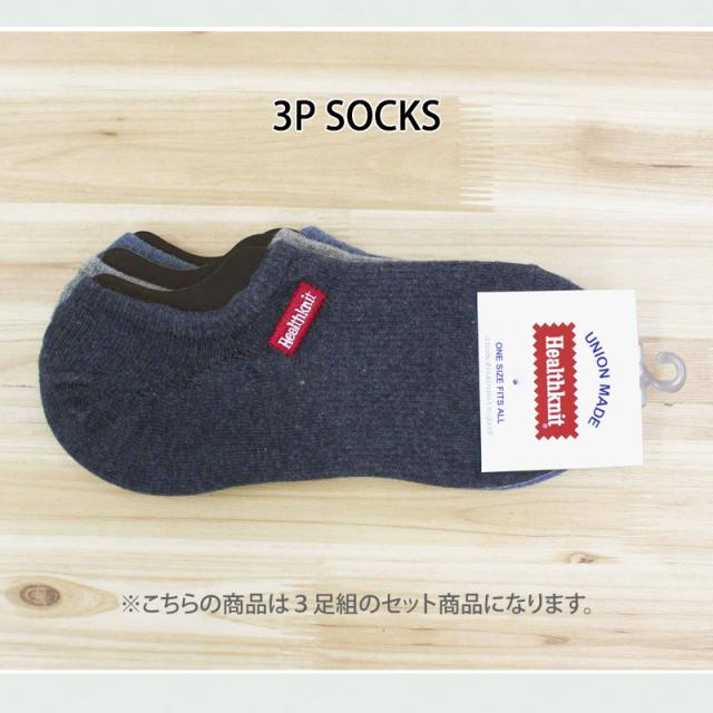 カジュアルコーディネートの足元にかかせない3足セットのお得なHealthknitのショートソックスです。