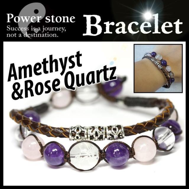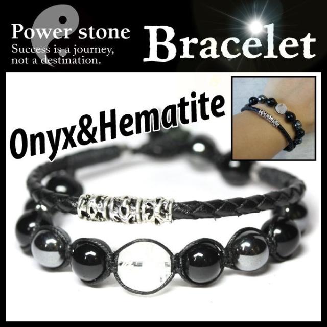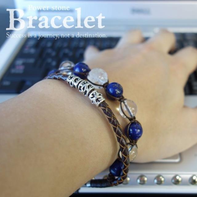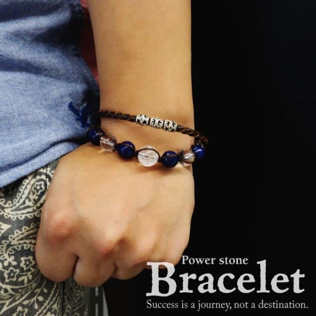 パワーストーンと本革編み込みの2ラインが1つになったブレスレット。