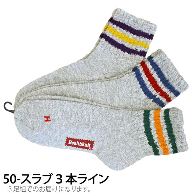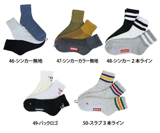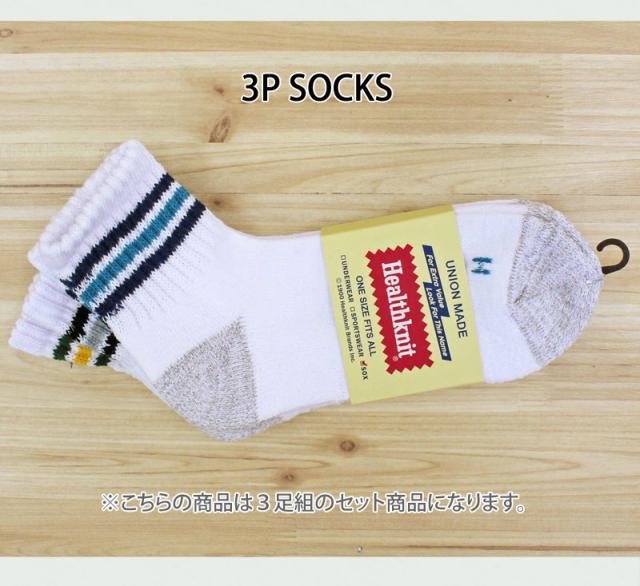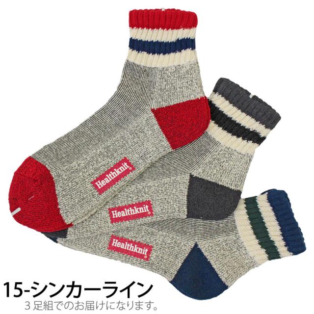 送料無料 Healthknit ヘルスニット 3足セット ジャガード スラブ ボーダー ライン入りショートソックス スニーカーソックス クォーターソックス メンズ靴 ゆうパケ