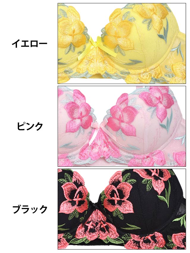 ブラセット 大きいサイズ ABCDEカップ 華やかなFlower刺繍SEXYブラジャー&ショーツ 下着 盛りブラ
