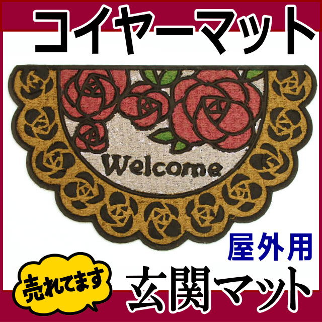 玄関マット コイヤーマット 薔薇柄 屋外用 ドアマット ラバー 泥落とし ドアマット ココヤシ 薔薇雑貨 バラ ローズ 花柄 おしゃれ
